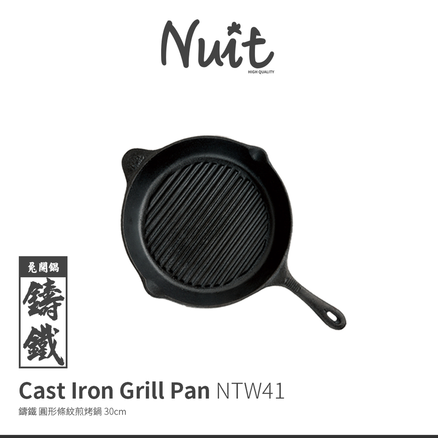 NTW41 努特NUIT 鑄鐵圓形條紋煎烤鍋 30cm 煎盤 烤盤 鑄鐵鍋 荷蘭鍋 煎鍋炒鍋 烹調鍋 美式牛排
