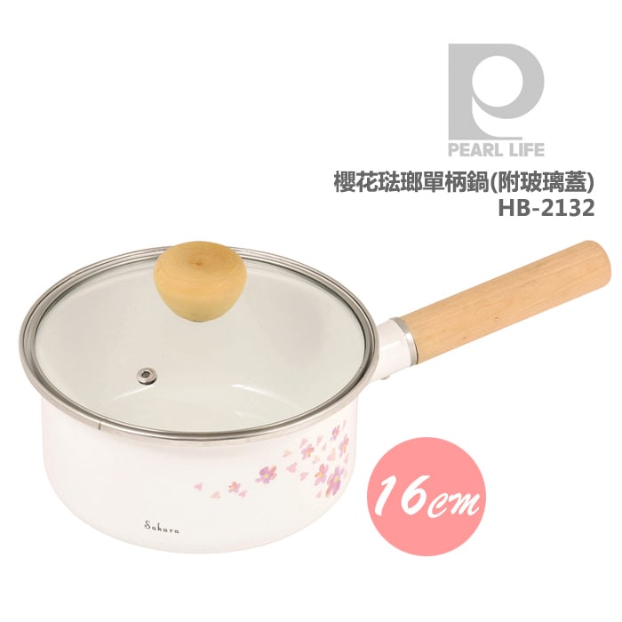 HB-2132 CAPTAIN STAG 日本鹿牌 Pearl Life 櫻花琺瑯16cm單柄鍋(附玻璃蓋) 單手鍋 搪瓷 燉鍋 鍋具 鍋子 湯鍋 飯鍋 炊具 火鍋