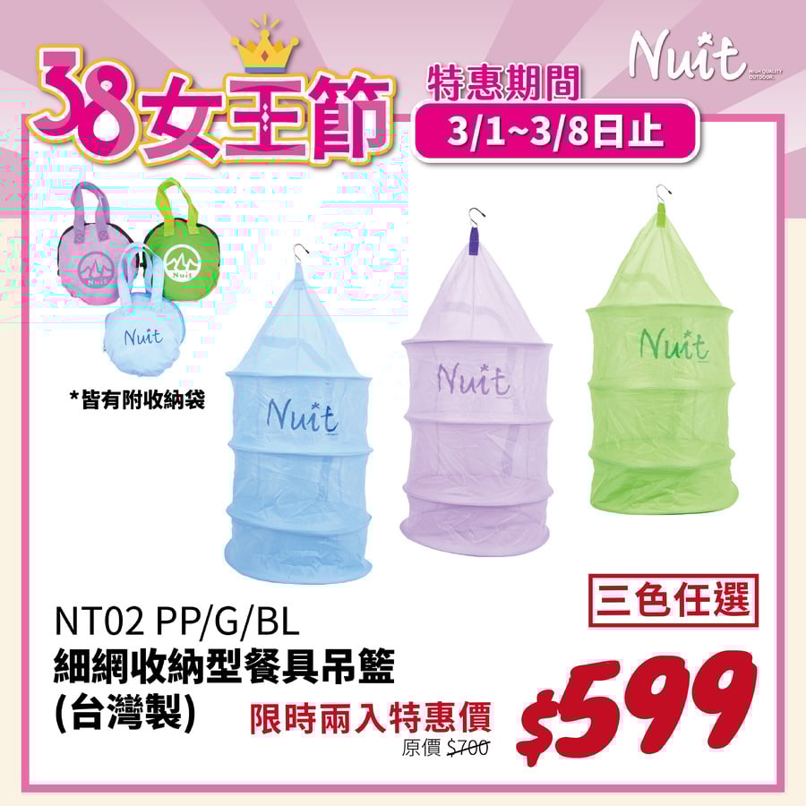 【38女王節 3/1-3/8 快閃特惠】 NT02 努特NUIT 魔術折疊餐櫥網籃 (三色任選) 餐廚籃 餐具吊籃 餐廚網(可收納 附收納袋) 台灣製