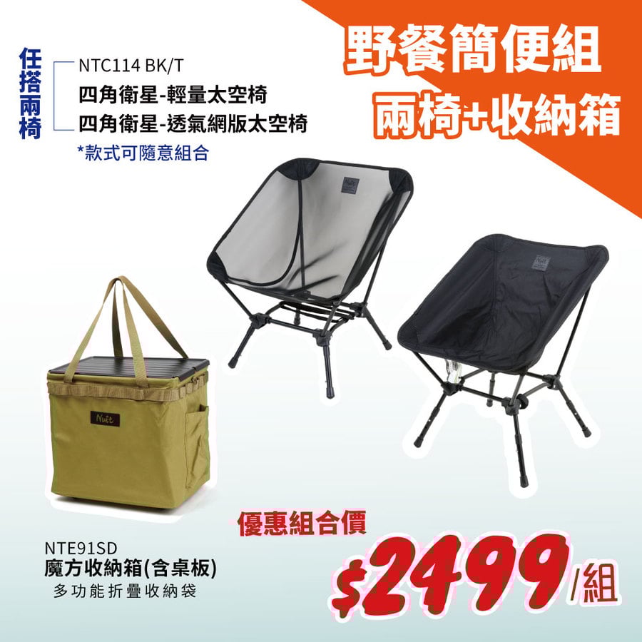 【野餐簡便組1+2椅】NTE91SD/BK 努特NUIT 魔方收納箱(含桌板) 多功能折疊收納袋 可折疊 野餐 NTC114 四角衛星椅 輕量太空椅 兩款椅子任選