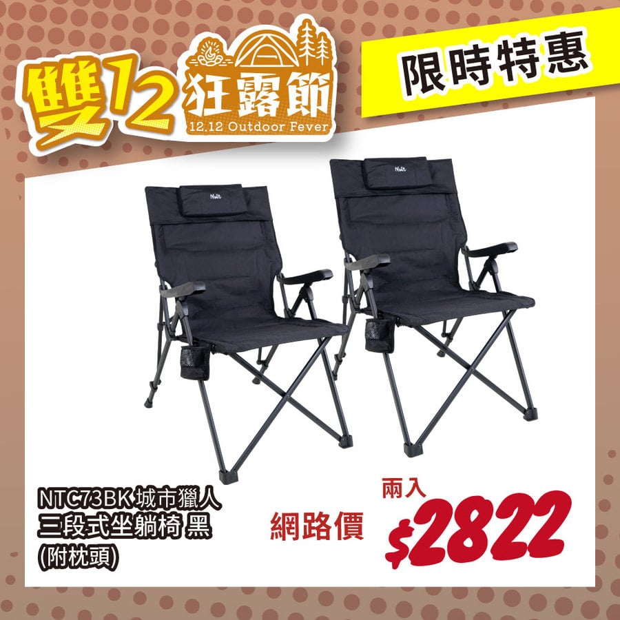 【雙12狂露節-限時特惠-兩入折扣】NTC73BK 努特NUIT 城市獵人 三段式坐躺椅 黑色 三段大川椅