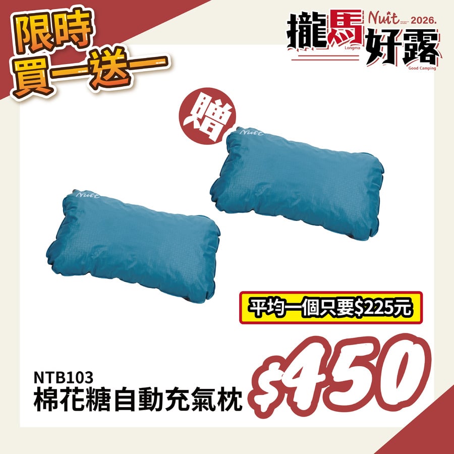 【2026攏馬好露-限時買一送一】NTB103 努特NUIT 棉花糖 自動充氣枕 15CM 自動充氣枕頭 登山 露營 午休枕 不規則形 便攜 不挑色