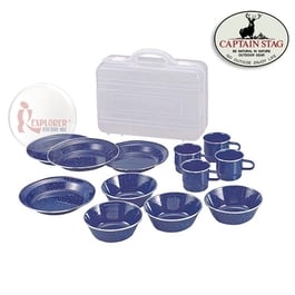 M-1078 CAPTAIN STAG 日本鹿牌小家庭琺瑯食器組附盒 (4人用) 餐具組 套鍋具組 餐碗盤 露營 野炊 廚具