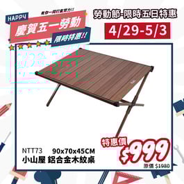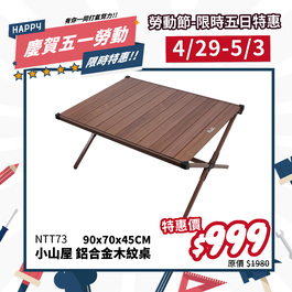 【4/29-5/3 慶賀五一勞動】NTT73 努特NUIT 小山屋 鋁合金木紋蛋捲桌 90X70cm 鋁合金桌 蛋捲桌 鋁捲桌 炊事桌 萬用桌 折合桌摺疊桌 仿木紋 露營桌