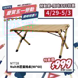 【4/29-5/3 慶賀五一勞動】 NTT28 努特NUIT 木匠櫸木蛋捲桌 90 x 60 快速可搭起 鋁捲桌 咖啡桌 木捲桌 櫸木桌