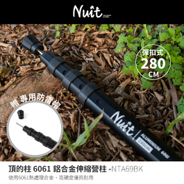 NTA69BK 努特NUIT頂的柱 6061鋁合金伸縮營柱94-280cm 鋁合金伸縮營柱 前庭柱 天幕營柱 營燈柱 天幕桿 營柱桿