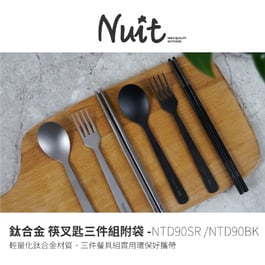 NTD90BK NTD90SR 努特NUIT 鈦合金 筷叉匙三件組附袋 輕量餐具組 鈦湯匙 鈦筷 鈦叉 環保餐具 鈦餐具 戶外 登山 露營 環保