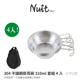 NTF239 努特NUIT 304不鏽鋼掛耳碗 310ml套組4入 雪拉碗 雪拉杯 野餐碗 登山碗 野營碗 可堆疊 含收納袋