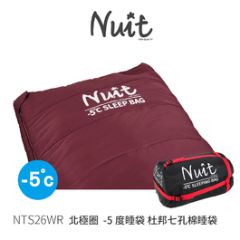 NTS26WR 努特NUIT 北極圈-5度 英威達杜邦七孔棉睡袋 Thermolite 醺酒紅 可雙拚 雙層鋪棉 210cm超長 信封型 可機洗