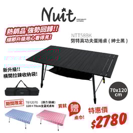NTT58BK 努特Nuit 真功夫鋁合金蛋捲桌 紳士黑 組合型 和室桌 炊事桌 萬用桌 鋁捲桌 折合桌摺疊桌 快速可搭起