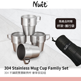 NTF90 努特NUIT 304不鏽鋼雙層斷熱馬克杯 豪華家庭組合 杯架 隔熱杯 斷熱杯 不銹鋼杯 茶杯 咖啡杯 套杯