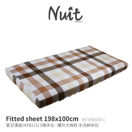 NTJ198100-1 努特NUIT 灰橘大格紋 水洗棉S號床包 適用NTB115 S獨立筒充氣床 星空漫遊充氣睡墊
