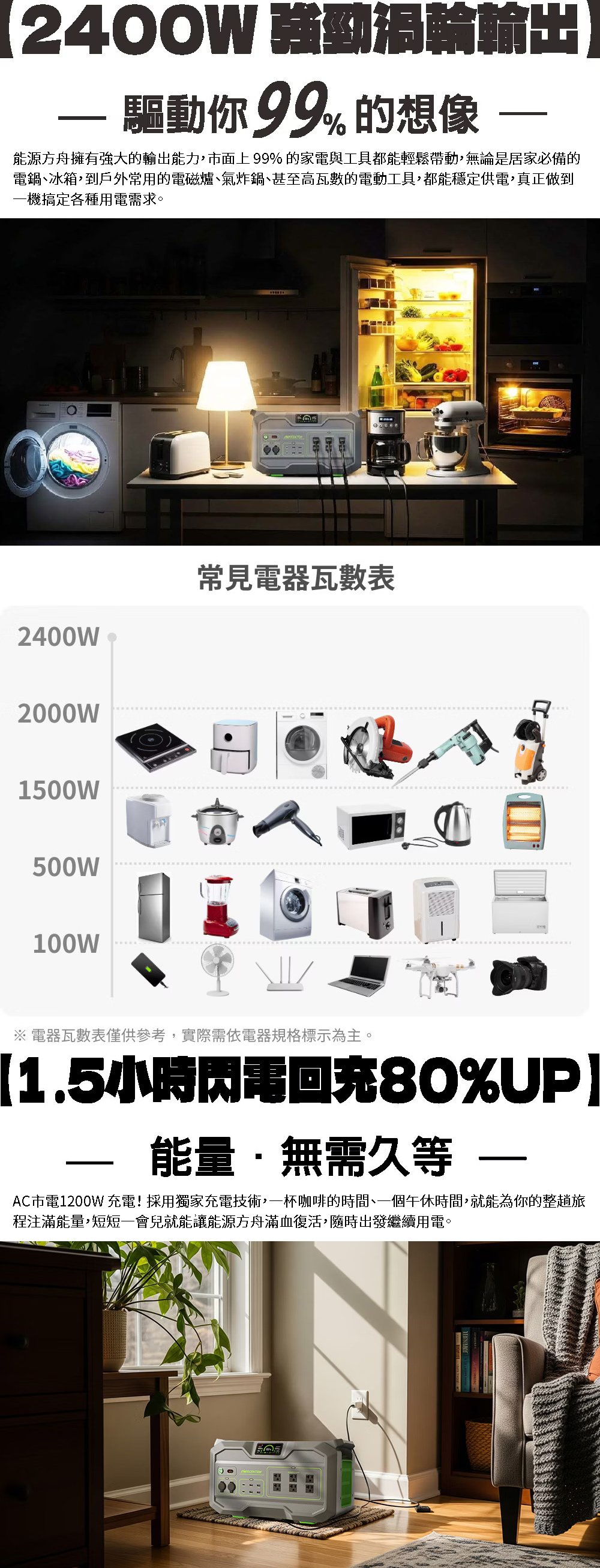 輸出 | 2400W,氣炸鍋、吹風機、冰箱沒問題