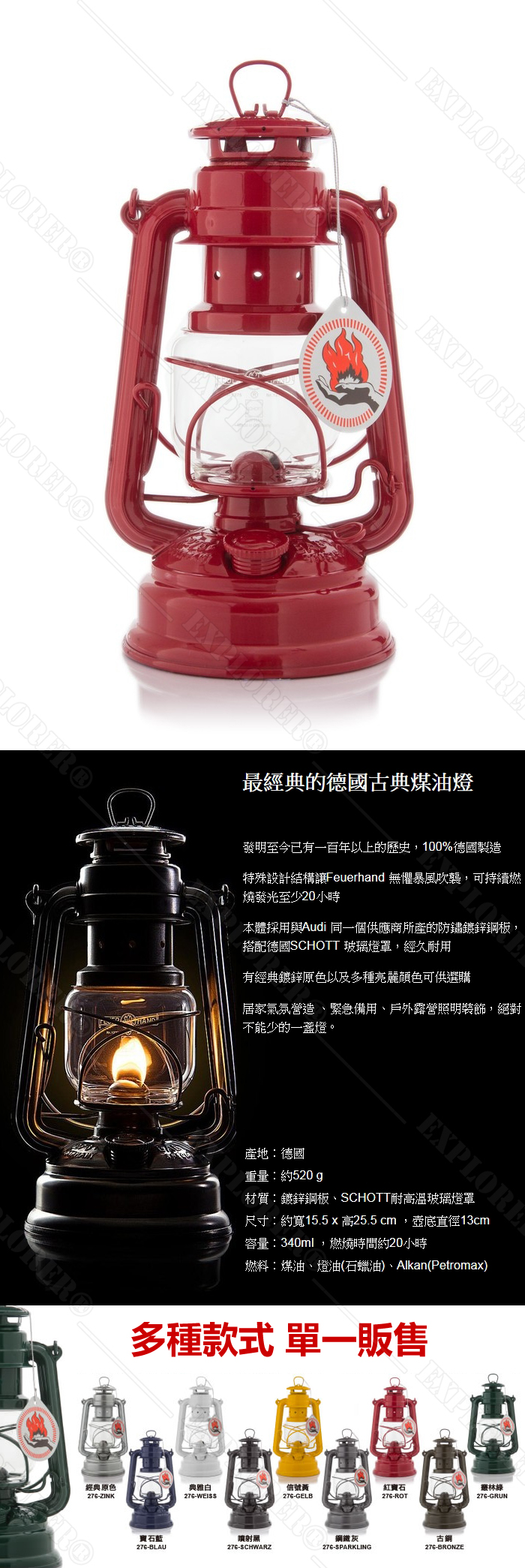 276-rot 德國 Feuerhand火手燈/煤油燈(紅) 露營燈 野餐燈 氣氛燈 裝飾燈 復古式煤油燈