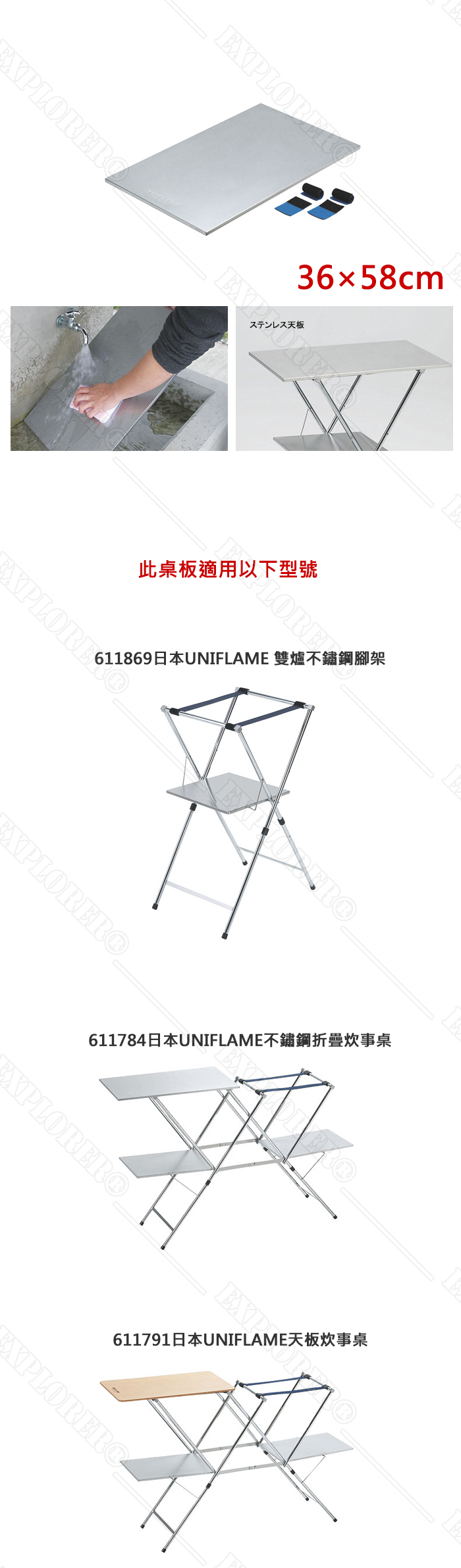 611814 日本UNIFLAME 炊事桌不鏽鋼天板 (日本製) 折疊炊事桌 行動廚房 適用 611869/611784/611791