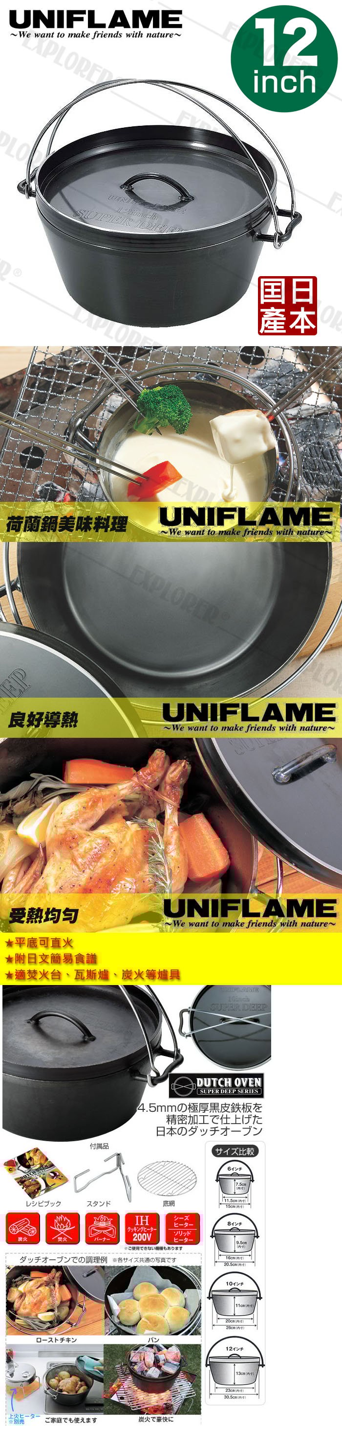 660966日本UNIFLAME 12吋黑皮鐵鍋 黑皮荷蘭鍋 鑄鐵鍋 日本製造(免開鍋