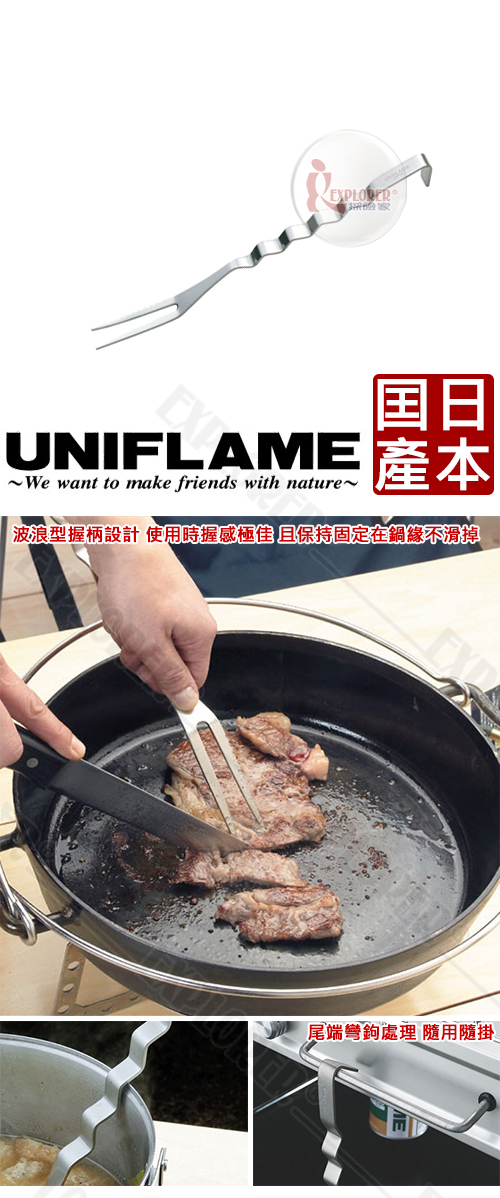 662182 日本UNIFLAME 不鏽鋼肉叉 (日本製) 35cm 波浪叉子 餐具叉 廚具叉 料理叉