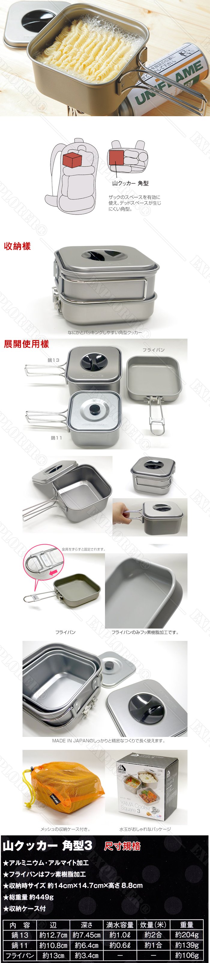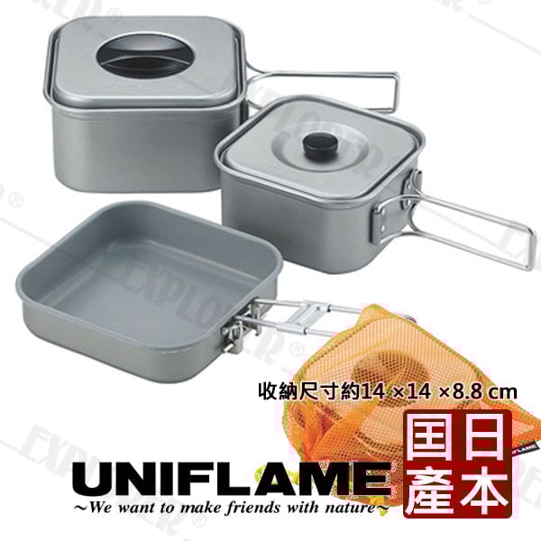 | 商品名稱 | 日本 UNIFLAME 鋁合金四方鍋三件組 (日本製) 麵鍋組 泡麵 炊具 碗 餐盤 飯勺 煎盤 套鍋組 |