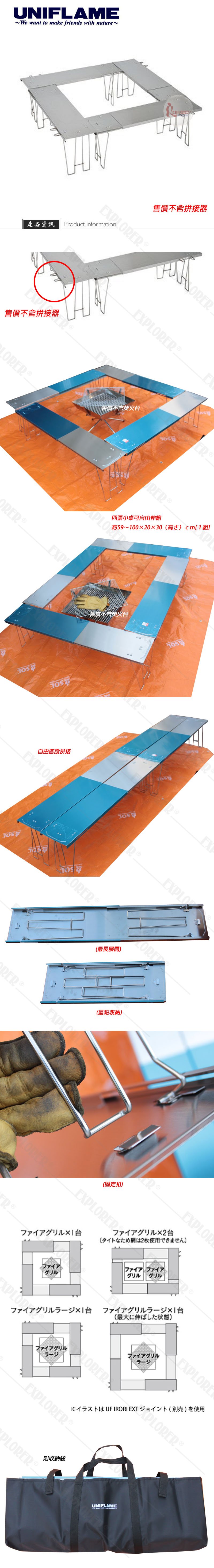 683170 日本UNIFLAME 魔法圍爐桌 不鏽鋼圍爐桌可拆分長桌 組合方桌露營焚火台烤肉必備