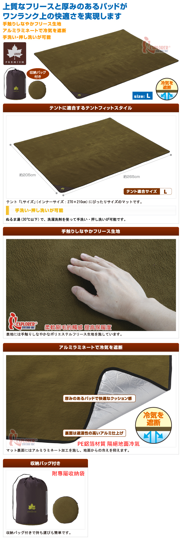 商品名稱 | 日本品牌LOGOS 個人防潮刷毛野營地墊L265*205cm 刷毛墊 睡墊 鋁箔墊 餐墊 地墊 |