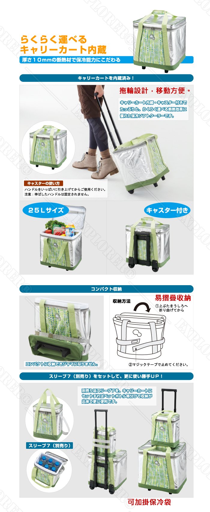 ![]() ● 厚達10mm的斷熱材料,保冷能力與眾不同。 ● 軟性材質可壓縮收納,輕薄小巧不佔空間。 ● 拉鍊附近也採用保冷設計,避免外部溫度從拉鍊縫隙滲入。 ● 拖輪設計,移動方便。 ![]()