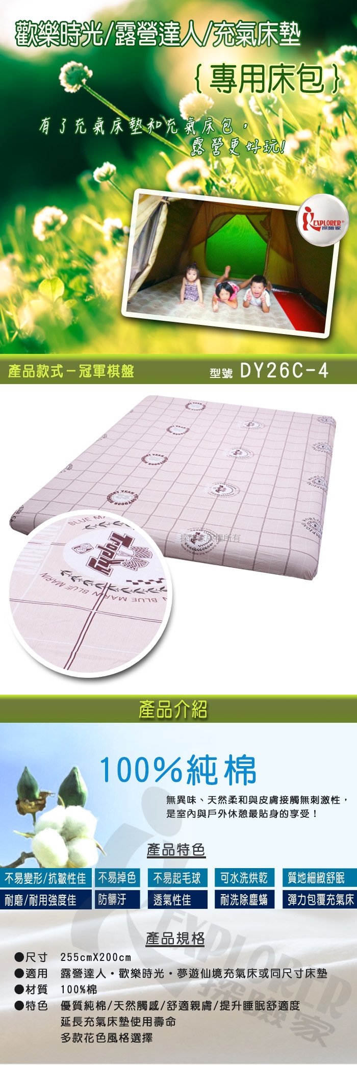 DY26C-4 冠軍棋盤純棉床包 (L)適夢遊仙境充氣睡墊 露營達人充氣床墊 歡樂時光充氣墊