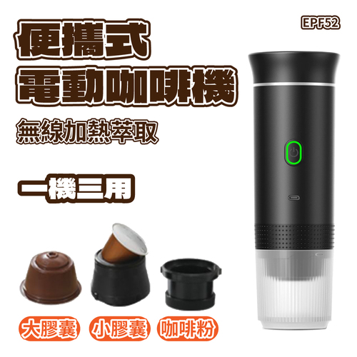 EPF52 便攜式 電動咖啡機 一機三用 行動咖啡機 支援大膠囊 小膠囊 咖啡粉 可加熱 一機三用 高壓萃取