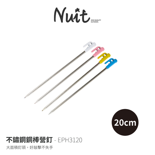 EPH3120 不鏽鋼鋼棒營釘 高硬度熱處理不鏽鋼棒營釘20CM 直徑9mm 不鏽鋼營釘營丁地釘白鐵營釘 適用炊事帳棚天幕帳蓬客廳帳篷