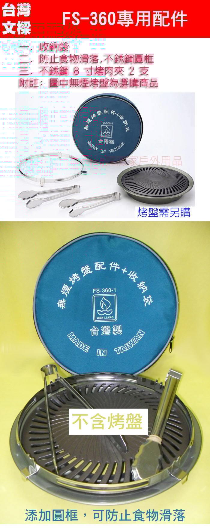 FS-360-1 文樑Wen Liang 無煙烤盤專用 配件 (含收納袋+邊圍+燒烤夾) FS-360專用