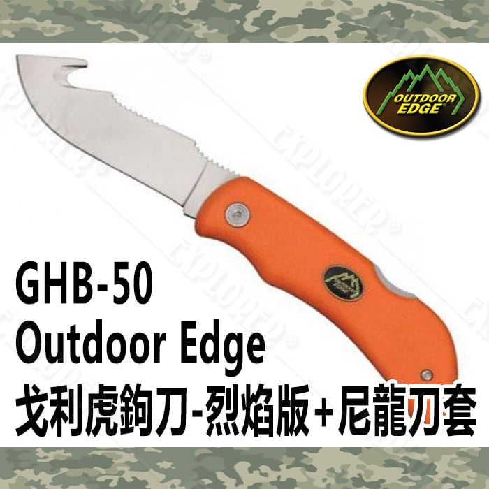 GHB-50 Outdoor Edge 戈利虎鉤刀-烈焰版 手柄鉤刀+尼龍刀套 小獵刀 折刀 摺疊刀野營 露營 登山露營野炊求生