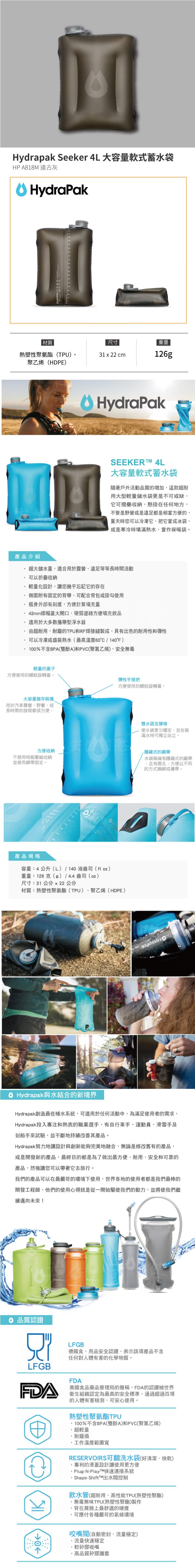 商品名稱 | Hydrapak Seeker 4L 大容量軟式蓄水袋 四公升 |
