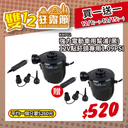 【雙12狂露節-限時12/1-12/15 買一送一】KMP02 努特NUIT 車用打氣幫浦高磅數電動充氣幫浦PSI 1.09 點菸頭電動打氣幫浦 適用奇幻森林 祕密花園 星空王國 歡樂時光充氣床墊露營達人夢遊仙境