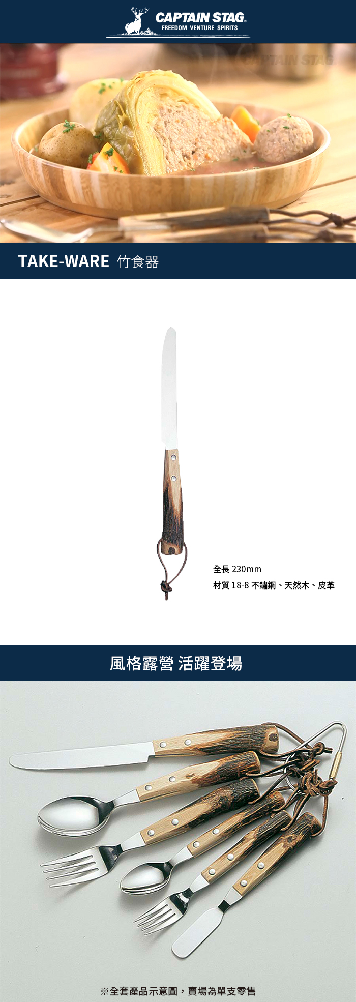 M-8565 CAPTAIN STAG 日本鹿牌 原木柄牛排刀 餐具 露營 野炊 廚具 風格露營