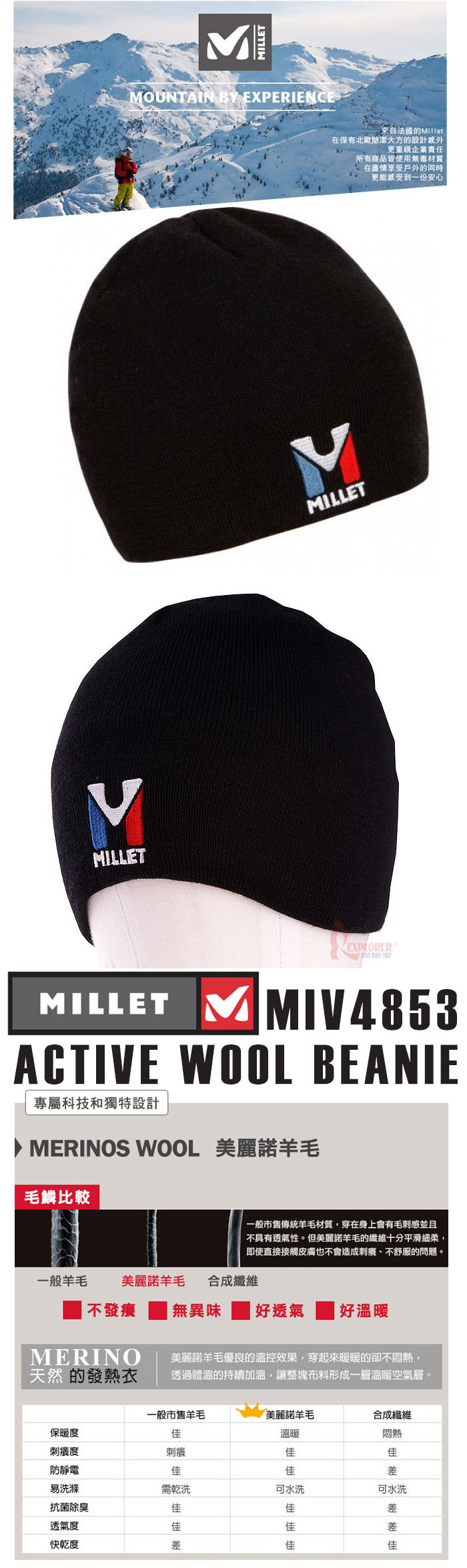 MIV4853法國 MILLET 美麗諾羊毛帽(內裏刷毛材質)中性款式MERINO美利諾L號