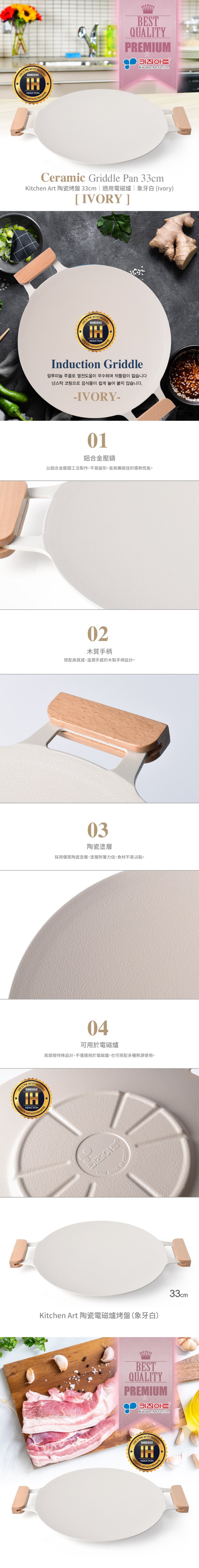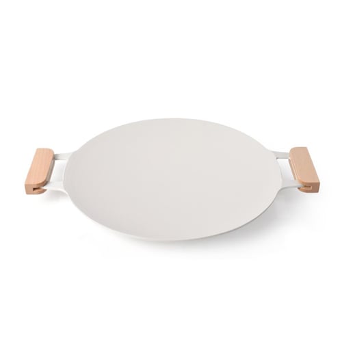 NK1422004 韓國陶瓷平面烤盤33cm 白(IH可用) 韓式不沾燒烤盤 附木手把 BBQ煎烤盤 烤肉必備 不沾烤盤 電磁爐適用
