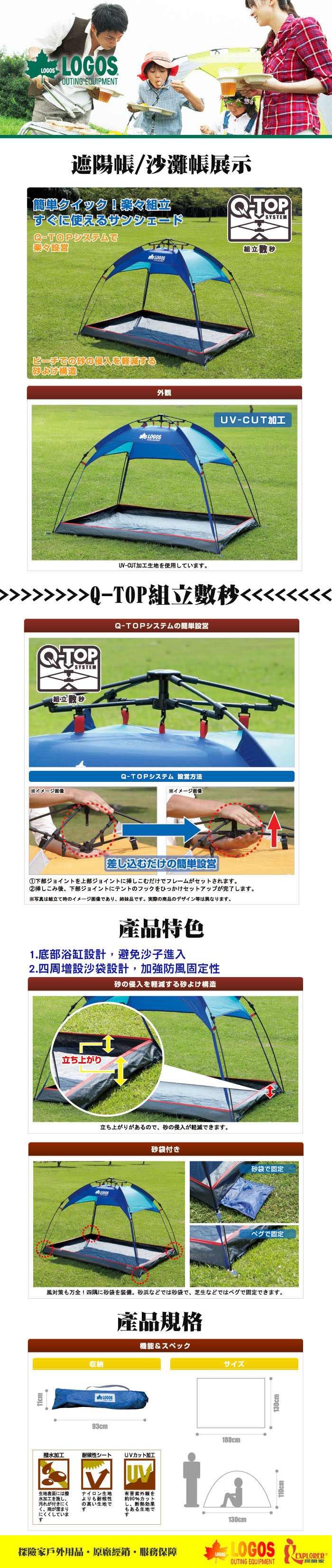 | 商品名稱 | LOGOS日本楓葉品牌 速立Q-TOP遮陽帳蓬/防沙款沙灘帳/快速可搭起 |