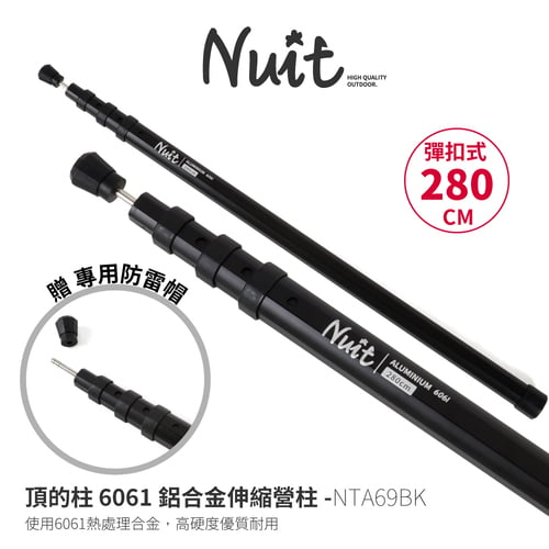 NTA69BK 努特NUIT頂的柱 6061鋁合金伸縮營柱94-280cm 鋁合金伸縮營柱 前庭柱 天幕營柱 營燈柱 天幕桿 營柱桿