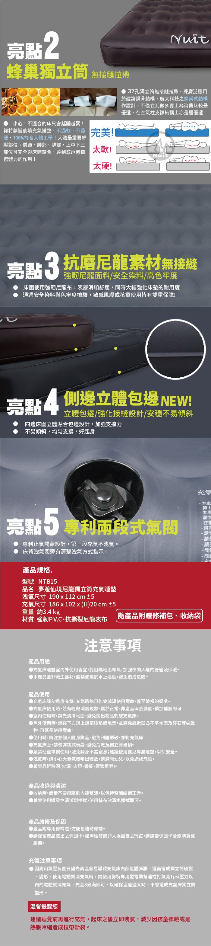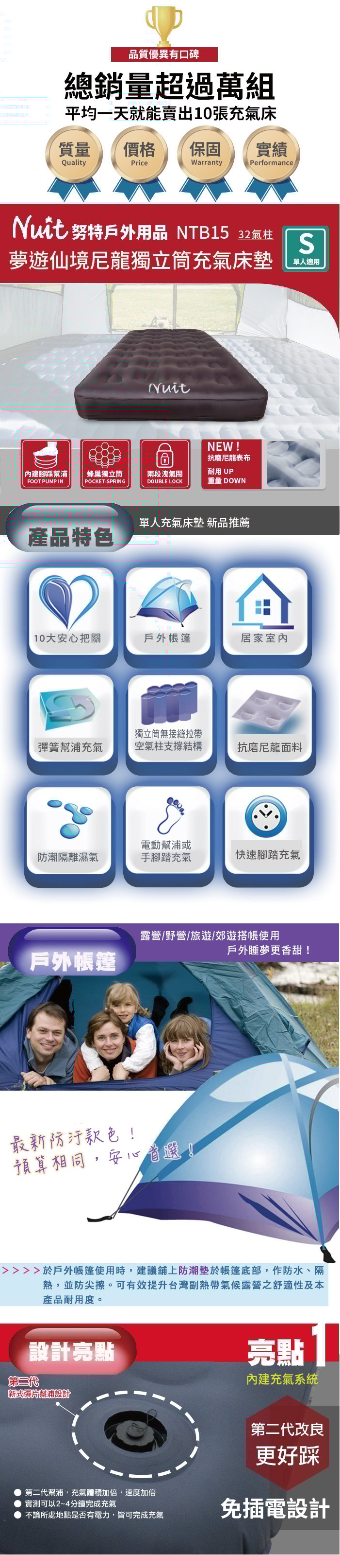 NTB15 努特NUIT 夢遊仙境尼龍獨立筒充氣床墊S號 32孔 單人享受歡樂時光成為露營達人