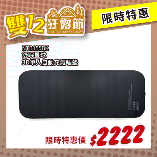 【雙12狂露節-限時特惠】NTB155BK 努特NUIT 舒眠星球3D單人TPU自動充氣睡墊 黑色 單人 10公分 環島 登山 旅遊 露營 居家 床墊 超彈海綿(已含包材費)