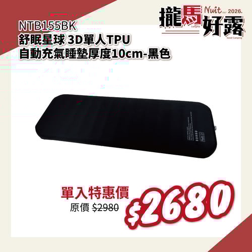 【2026攏馬好露-限時特惠】NTB155BK 努特NUIT 舒眠星球3D單人TPU自動充氣睡墊 黑色 單人 10公分 環島 登山 旅遊 露營 居家 床墊 超彈海綿(已含包材費)