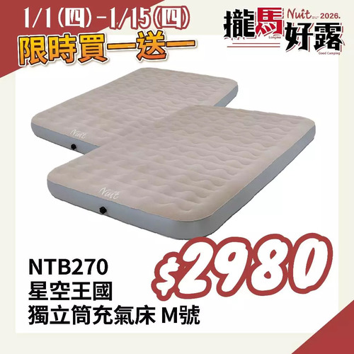 2026攏馬好露-限時特惠 買一送一$2980 NTB270 努特NUIT 星空王國 波浪型植絨獨立筒充氣床 M號 波浪型拉帶充氣床墊 享受歡樂時光 露營充氣床 雙人充氣床