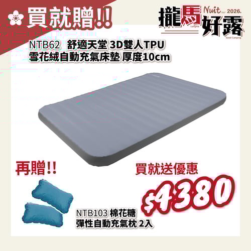 【2026攏馬好露-限時特惠買就贈NTB103自動充氣枕x2!! 】NTB62 努特NUIT 舒適天堂 3D TPU 自動充氣睡墊 雙人 10公分 環島 登山 旅遊 露營 居家 睡床 超彈海綿 沖孔海綿