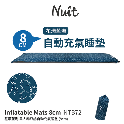 NTB72 努特NUIT 花漾藍海 自動充氣睡墊床 8CM 春亞紡表布 可拼接 環島 登山 旅遊 露營