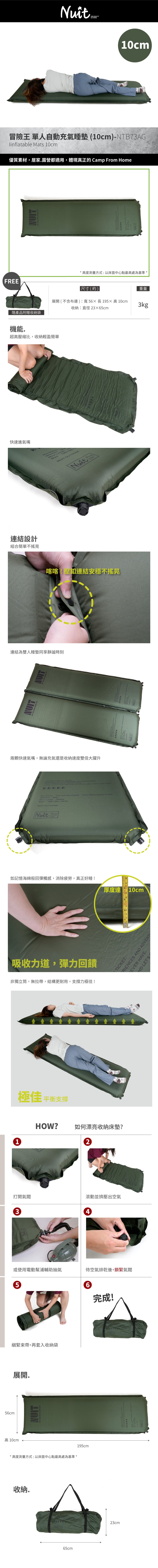 【熱銷改版】NTB73AG 努特NUIT 冒險王 自動充氣睡墊床 10CM 春亞紡表布 可拼接 環島 登山 旅遊 露營