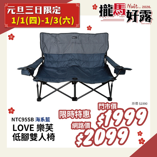 【2026攏馬好露-元旦3日限定】NTC95SB 努特NUIT LOVE 樂芙低腳雙人椅 (海系藍) 雙人沙發椅 摺疊椅 折合椅 折疊沙發 小車廂專用 耐重160KG
