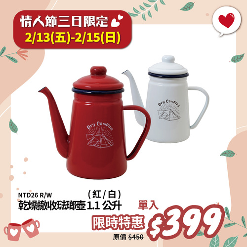【情人節-三日限定】NTD26R/W 努特NUIT 乾燥撤收壺 1.1公升-紅 白 煮水壺 泡茶壺 咖啡壺 琺瑯壺 1.1L