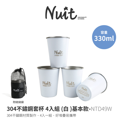 NTD49 努特NUIT 304不繡鋼套杯4件組 附收納網袋 330cc 330ml 一組四入 飲料杯 不鏽鋼杯 茶杯 冷飲杯 冷水杯 露營野餐 居家戶外 登山