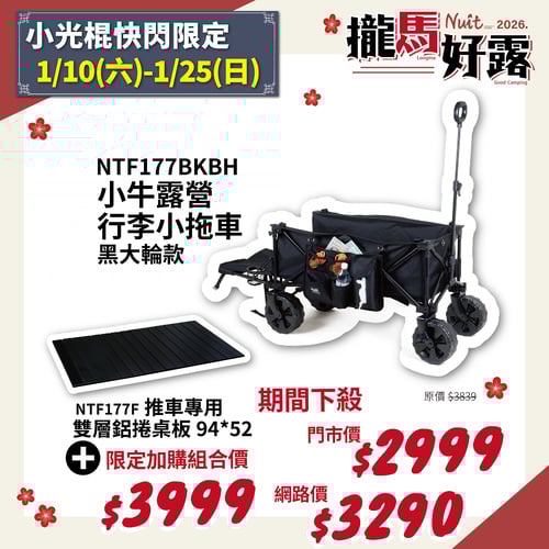 【小光棍-快閃特惠1/10-1/25】【黑大輪加長拉桿】NTF177BKBH 努特NUIT 小牛露營裝備推車 黑 大輪版 限時特惠 【另外限定加購桌板組合價】折疊式行動手推車 小牛推車 置物車 裝備拖車 親子拖車 行李車(已含包材費)
