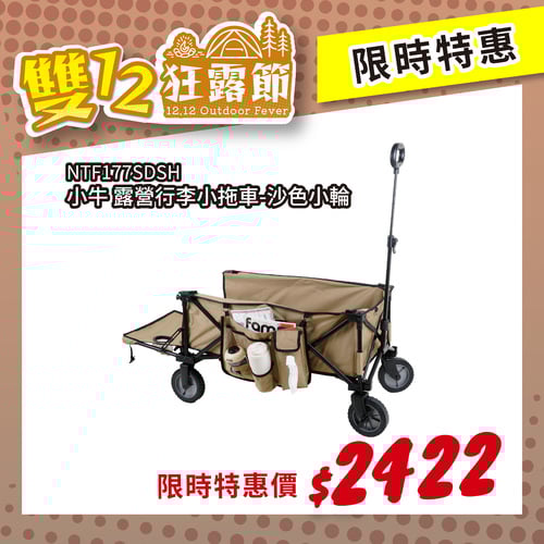 【雙12狂露節-限時特惠】【沙色小輪】NTF177SDSH 努特NUIT 小牛露營裝備推車3 露營行李推車側掛袋 加長拉桿 折疊式行動手推車 置物車 裝備拖車 親子拖車 行李車(已含包材費)