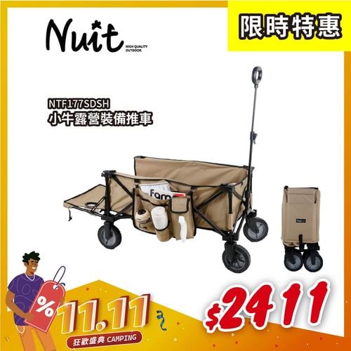 【11月狂歡盛典限時優惠】【沙色小輪】NTF177SDSH 努特NUIT 小牛露營裝備推車3 露營行李推車側掛袋 加長拉桿 折疊式行動手推車 置物車 裝備拖車 親子拖車 行李車(已含包材費)
